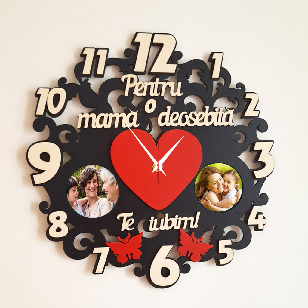 ceas personalizat din lemn pentru mamă este mai mult decât un accesoriu de decor; este o declarație de recunoștință. Realizat din lemn de înaltă calitate, cu un finisaj natural și elegant, ceasul poate fi gravat cu un mesaj special, numele copiilor sau o dată memorabilă.
