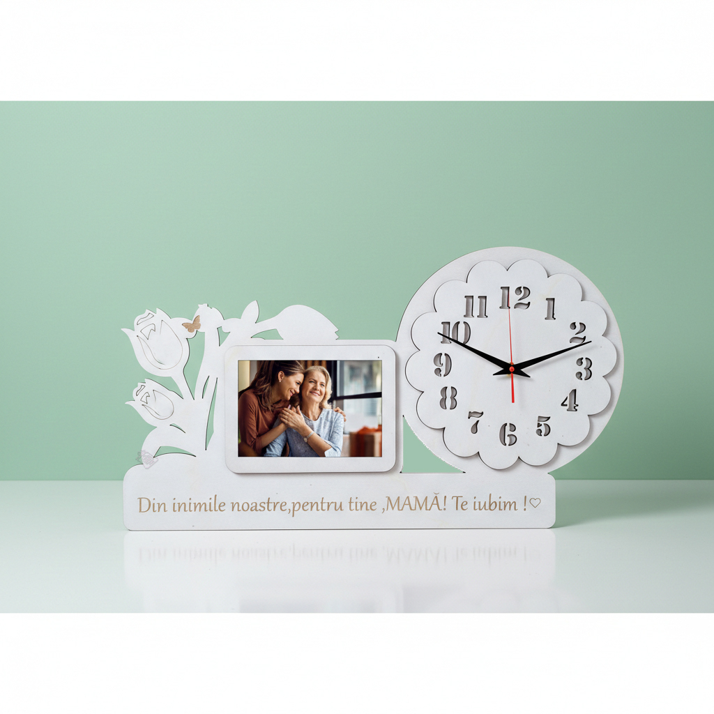 Damoro Ceas cu rama foto,gravat,personalizat cu text,model Lalea
