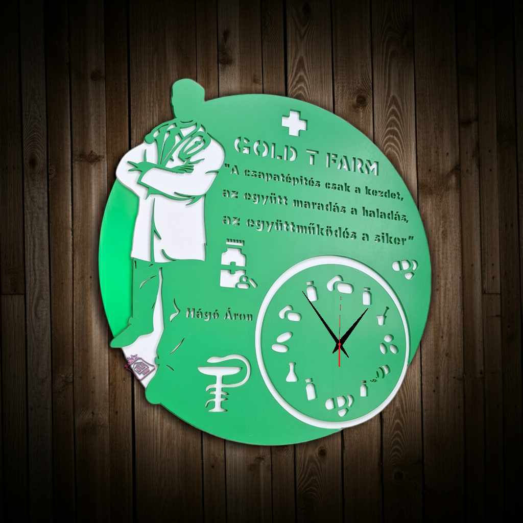 Ceas personalizat farmacist, este realizat din lemn si finisat folosind lacuri profesionale pe baza de apa.