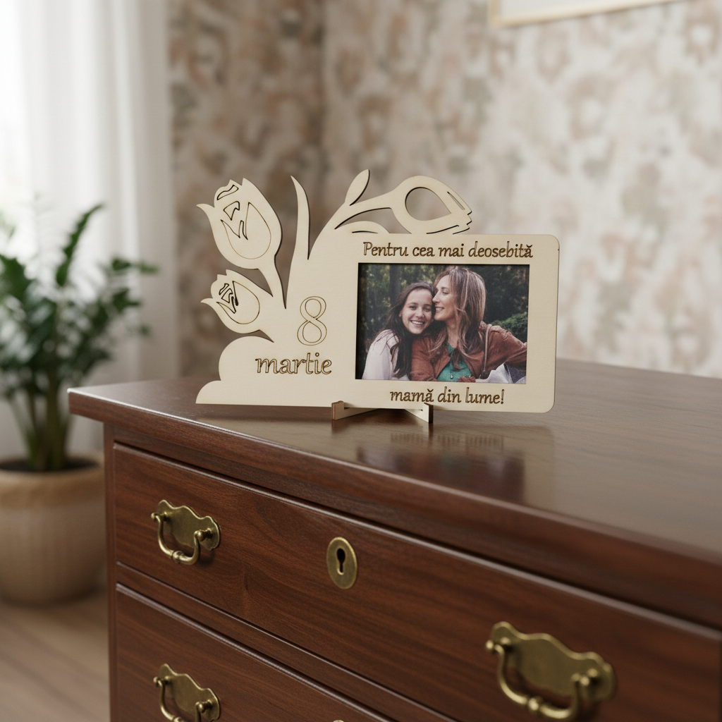 8 Martie. Fie că vrei să surprinzi zâmbetul mamei, înțelepciunea bunicii sau entuziasmul unei surori dragi, această piesă de decor aduce o notă de eleganță și căldură oricărui spațiu de lucru sau colț de casă.