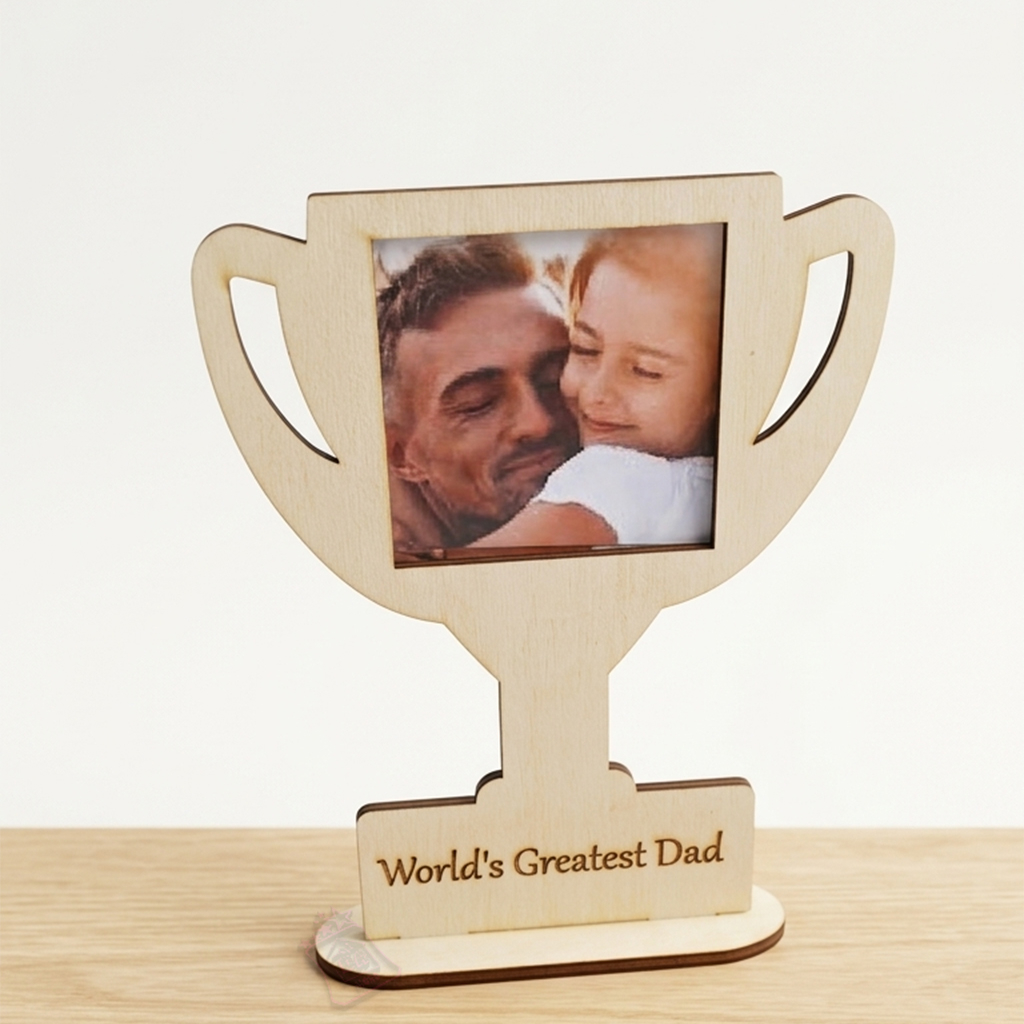 Surprinde-l pe eroul familiei cu un cadou care vorbește de la sine. Acest trofeu din lemn personalizat nu este doar o ramă foto, ci o recunoaștere simbolică a iubirii și dedicării sale. Realizat cu grijă din lemn natural, trofeul îmbină căldura texturii organice cu durabilitatea unui moment imortalizat.